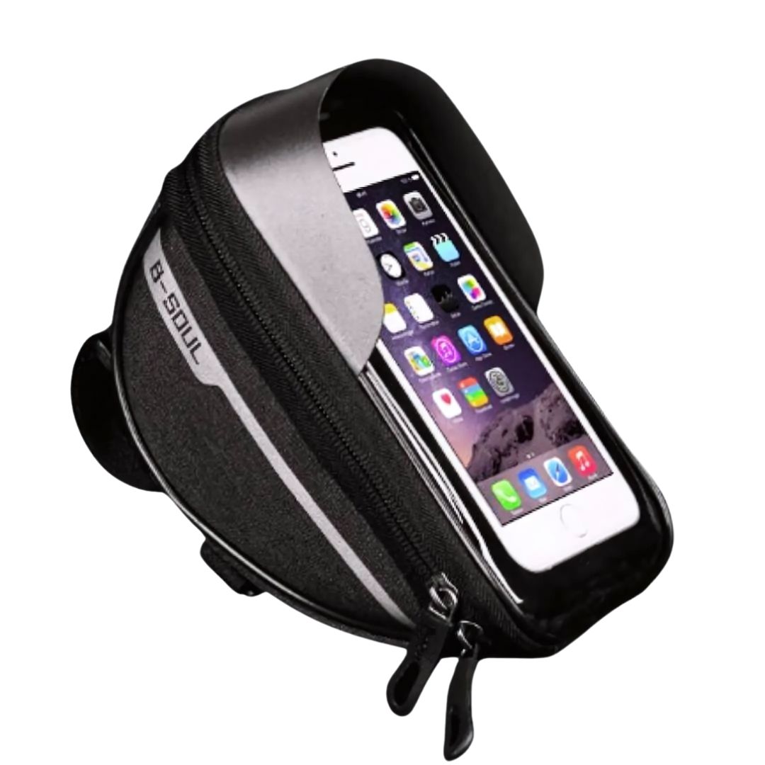 Mantén tu teléfono seguro y accesible mientras pedaleas con este práctico porta teléfono para bicicleta. Su diseño resistente al agua protege tu dispositivo y permite usarlo durante tus recorridos sin preocupaciones. Gracias a sus correas de velcro, se instala y retira de manera rápida y sencilla, adaptándose a la mayoría de los manubrios. Además, cuenta con espacio adicional para guardar pequeños objetos personales.