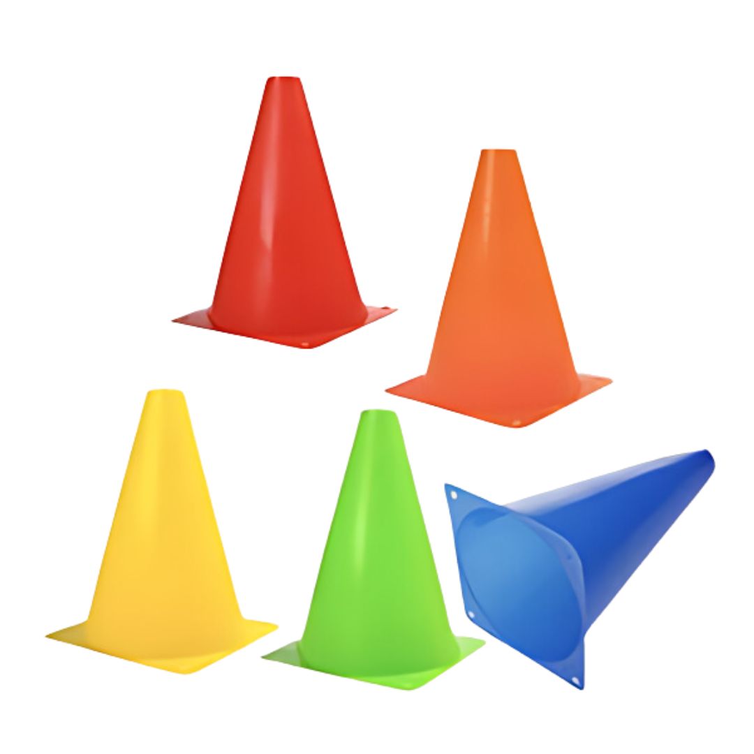 Los conos de agilidad son accesorios de entrenamiento diseñados para mejorar la coordinación, velocidad, y agilidad de los atletas en diversas disciplinas deportivas. Estos conos se utilizan para marcar áreas de ejercicio o para establecer circuitos de agilidad que desafían las habilidades motrices de los deportistas, ayudando a mejorar su rendimiento en actividades que requieren cambios rápidos de dirección, velocidad y precisión.