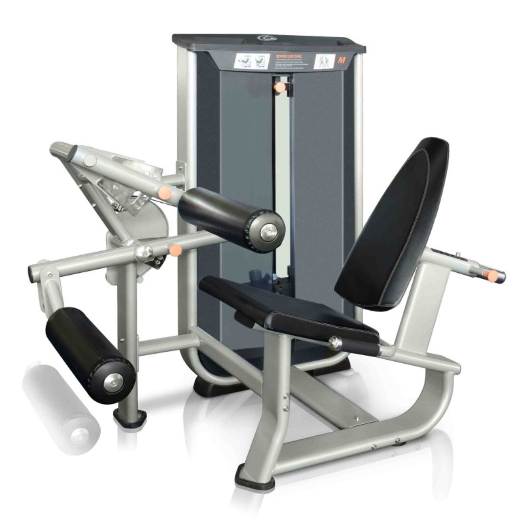 La máquina de flexión de piernas V8-505 entrena los isquiotibiales de forma segura y eficiente. La almohadilla que presiona los muslos otorga estabilidad en el movimiento y su característica giratoria en la tibia hacen más cómodo el ejercicio. El rango de movimiento es ajustable para todos los usuarios y gracias a la posición «reclinada» del asiento, más el par de manillas laterales, se transfiere la presión hacia la espalda del usuario, de esta forma se reduce la presión en las articulaciones.
