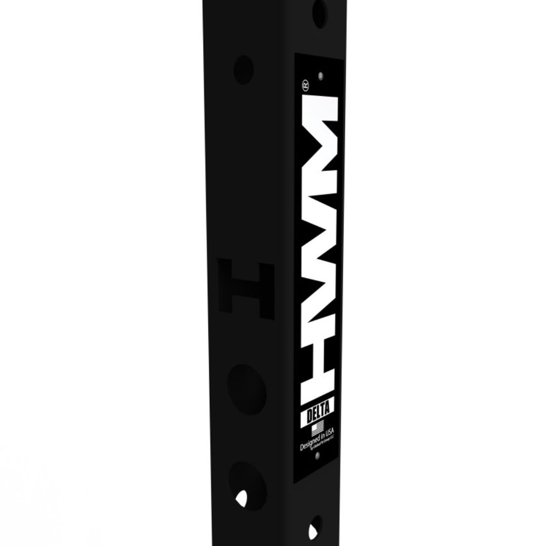 REVESTIMIENTO EN POLVO DE PRIMERA CALIDAD. Con un acabado en polvo negro con terminación mate, el Half Rack Delta de HWM® seguirá viéndose bien independientemente del uso intensivo que reciba.