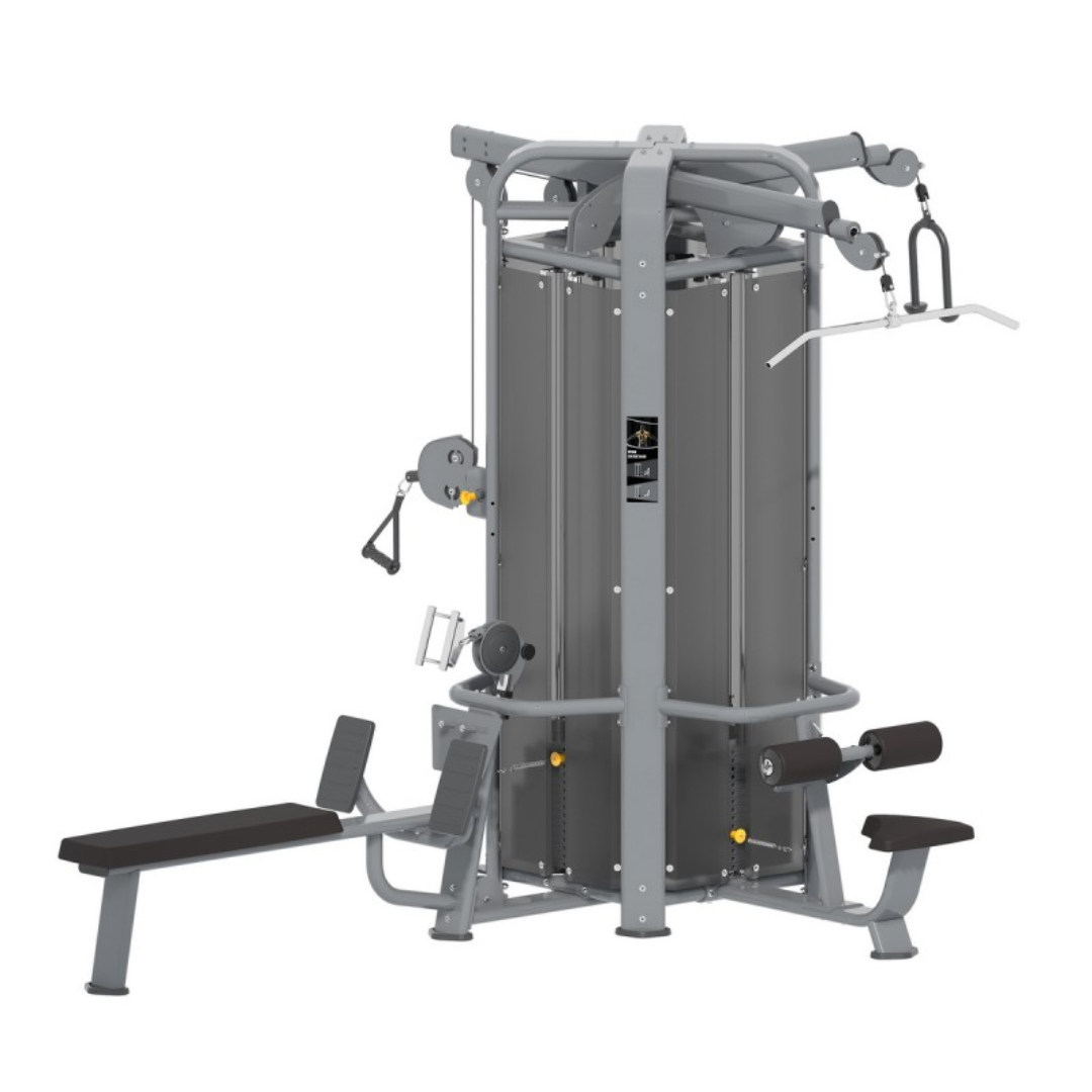 -Distribución de pesos por estación: Polea Ajustable 175 lbs. Polea Tríceps: 175 lbs. Pulldown: 265 lbs. Low row: 265 lbs.