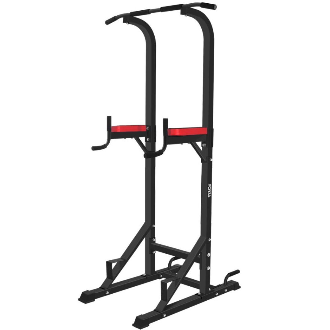 Estructura reforzada en ambos lados de la parte inferior de la base, permitiendo que esta barra de dominadas soporte más peso. Además, incluye un soporte inferior en la zona de entrenamiento para dips, lo que aumenta aun mas su estabilidad.