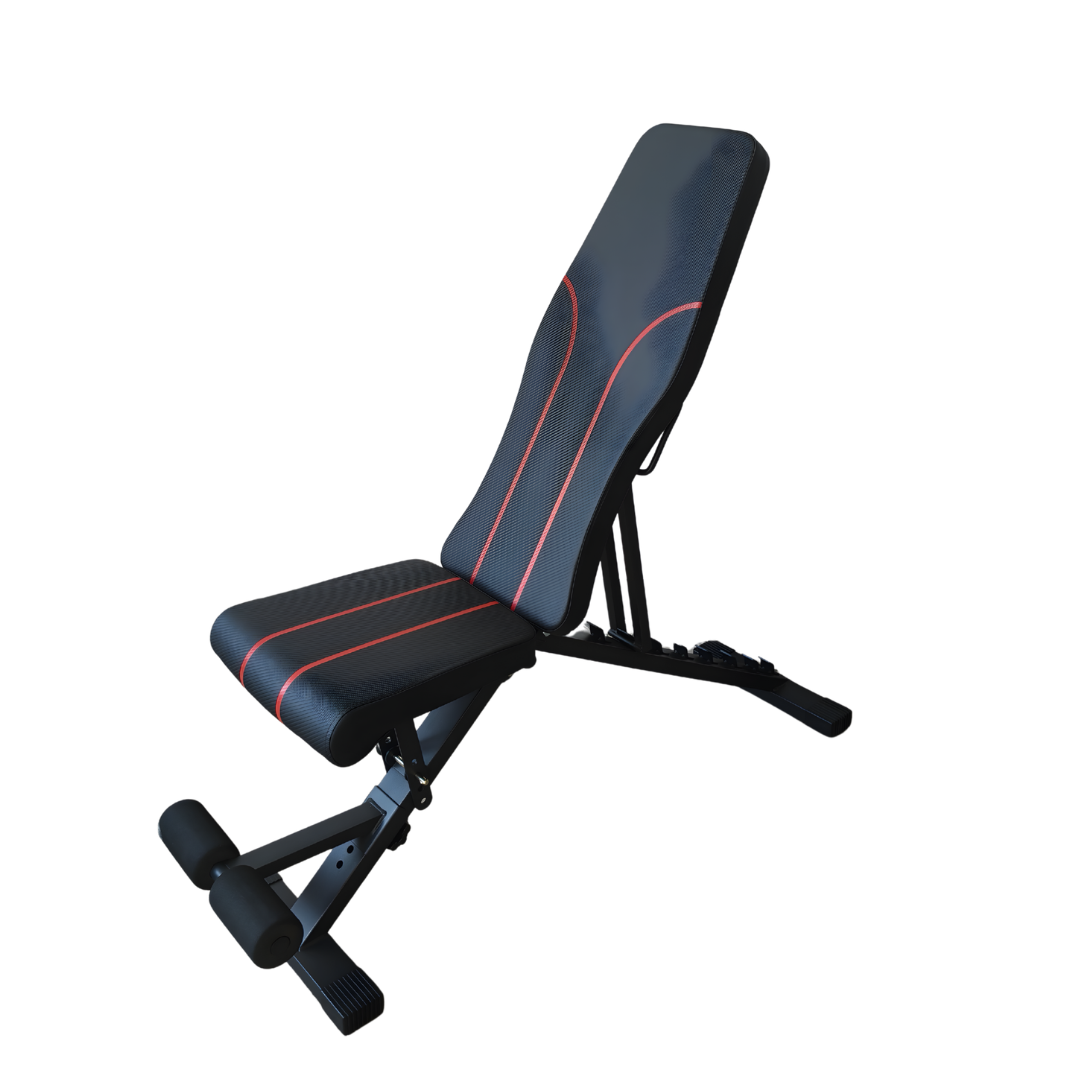 Banco reclinable con 6 niveles, asiendo ajustable. Se puede plegar.