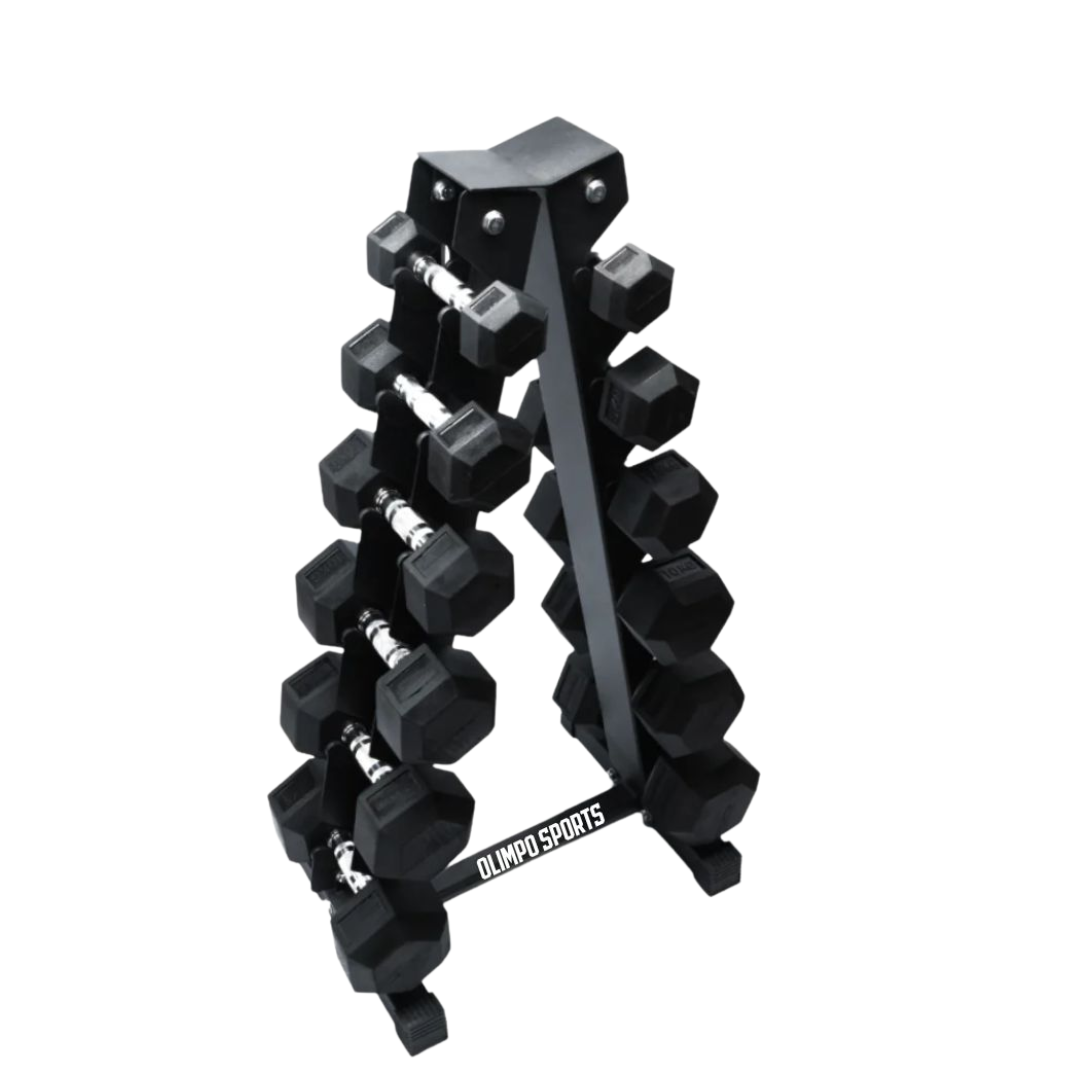 Rack 6 niveles piramidal+105kg en mancuernas