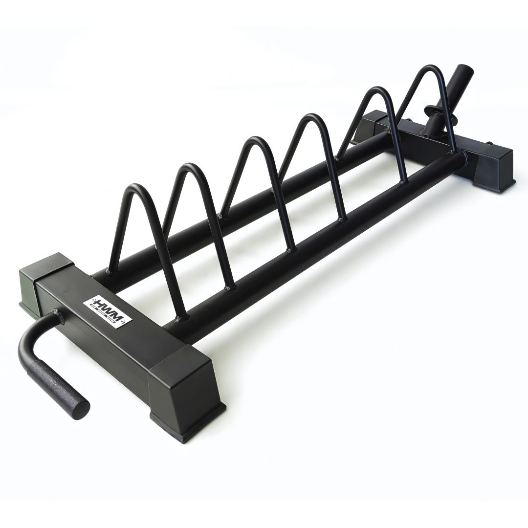 El porta discos de suelo  ofrece una solución de almacenamiento única y versátil para todos los tipos de bumper plates, incluidos Hi Temps, bumpers de caucho rígido, discos de competición y discos de acero. Utilizando nuevas capacidades de fabricación, esta versión presenta una apariencia más elegante con patas anchas para una mayor estabilidad durante el transporte y un juego de pies de goma que soportan una gran carga para proteger el piso de su gimnasio.
