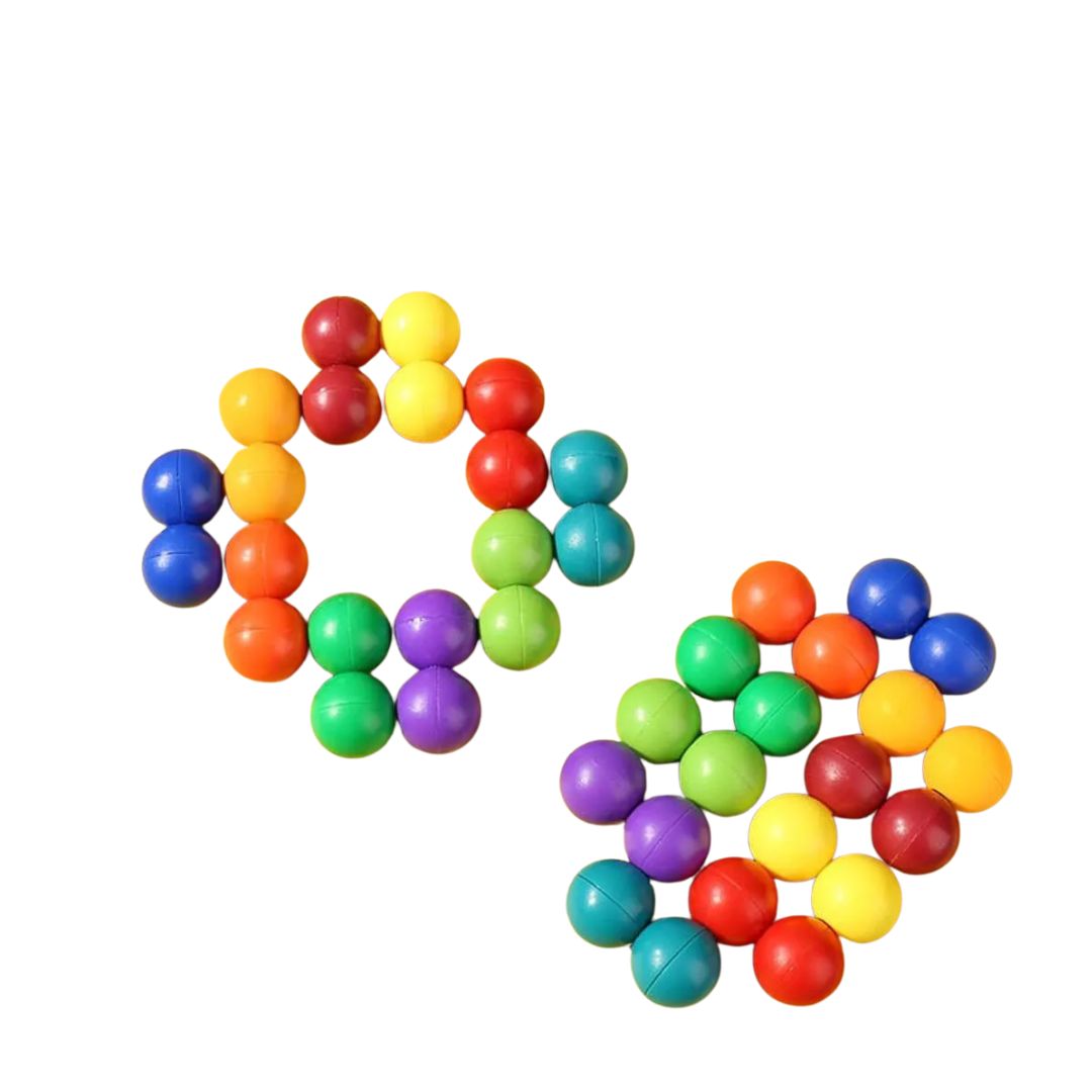 El diseño único de la pelota educativa, con sus 20 bolas de colores del arco iris conectadas en una estructura similar a una cadena, permite la creación de diferentes estructuras morfológicas a través de la rotación. Esta característica promueve el aprendizaje y permite a los usuarios crear diversas formas y patrones. Estas pelotitas están diseñadas para brindar infinitas horas de diversión y al mismo tiempo ayuda a canalizar tu energía, distraerte y aliviar el estrés o ansiedad.